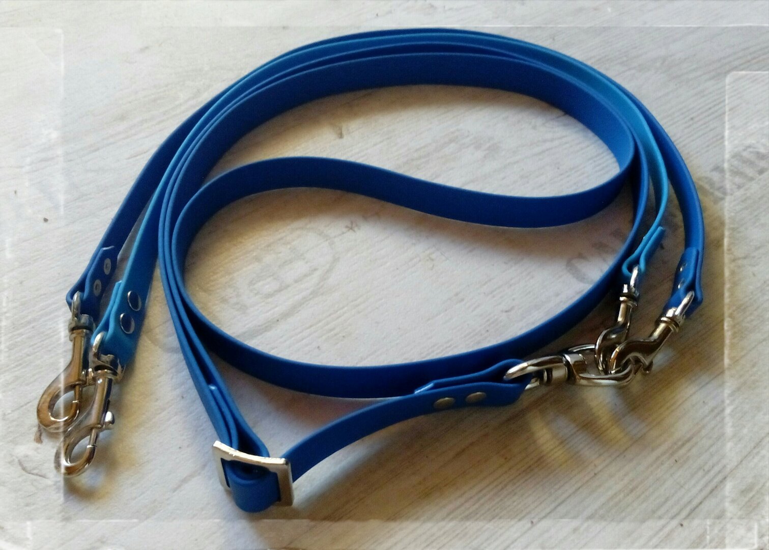 Biothane 20mm, Umhängeteil ca 180cm, stufenlos verstellbar, drei Koppelteile ca 70cm und 13mm breit, mit 65er Haken, Koppelteile komplett abnehmbar