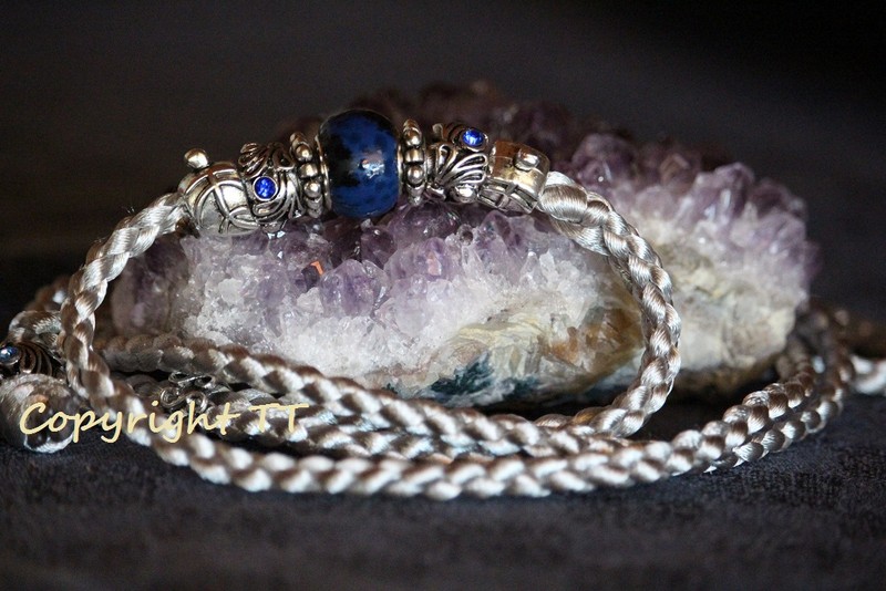 handgeflochten, mit handgemachten Perlen nach Eigenentwurf, silberne Pferdeperlen, Babysnap, auf Wunsch mit Showkettchen lieferbar (+10.- Euro), 24.- Euro, Länge ca 80cm