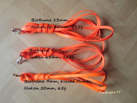 Zum Gewichtsvergleich hier die Ausführungen der Biothane-Leinen,