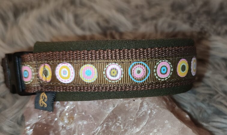 Gurtband 25mm, Stoff Spaniels, Nappaleder, Klickverschluss, für Halsumfang ca 29-34cm