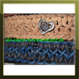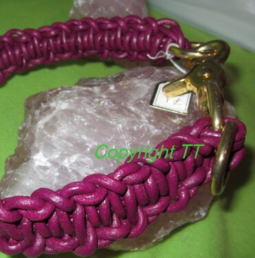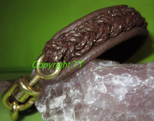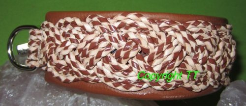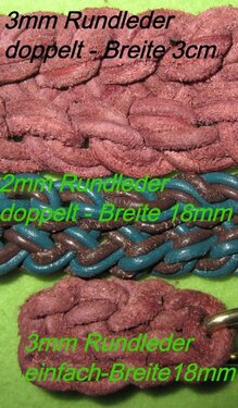 Das Flechten mit Leder habe ich über die Schmuckleinen kennen gelernt. Da es mir große Freude macht, wollte ich mehr lernen und kaufte auf einem Markt ein geflochtenes Bändchen, um es zu Hause auseinander zu nehmen und zu schauen, wie das geht. Nachdem ich wußte, wie das Bändchen geflochten wurde, suchte ich weiter nach Anleitungen, da ich die keltischen Knoten einfach wunderschön finde. Nicht alle sind für Halsbänder geeignet, aber dafür macht das Ausprobieren eine Riesenfreude.