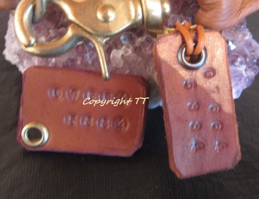 - einfacher Lederanhänger mit Telefonnummer, Größe ca 2X4cm -abhängig von der Länge der Telefonnummer